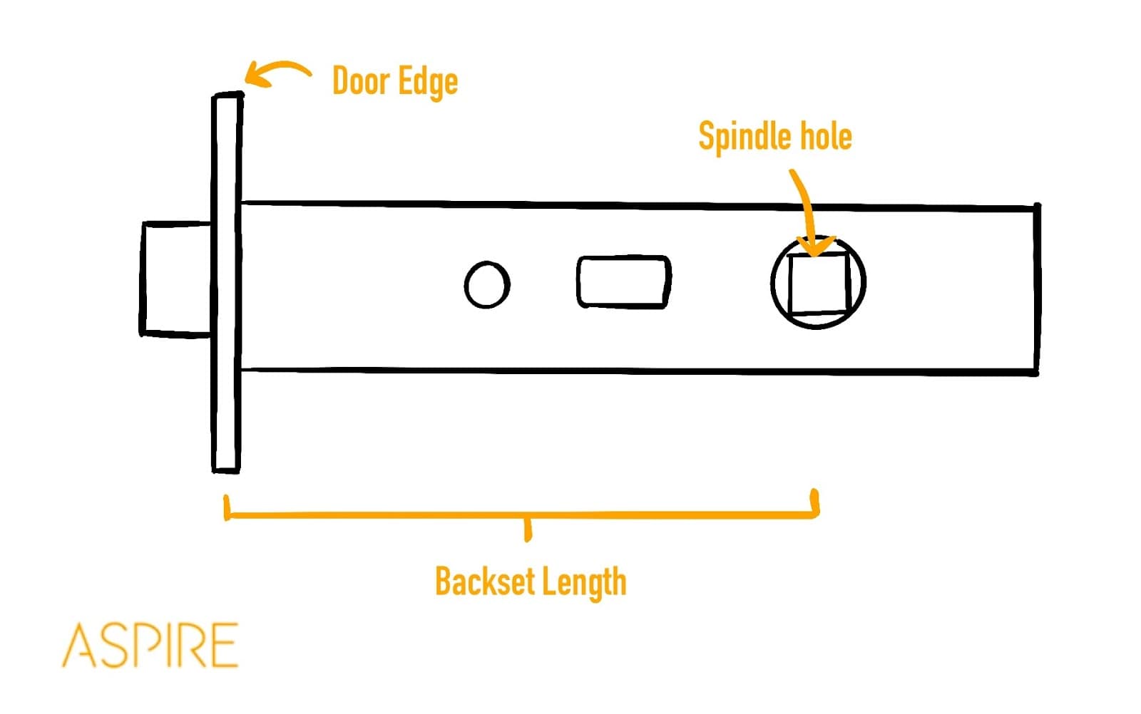 The backset measurement is the distance between the faceplate of the latch and the spindle hole, which is where your door handle threads through. This measurement will determine how far from the edge of the door your door handle sits, something which can have both a practical and visual impact.