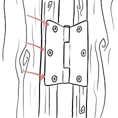 7. With the help of another person, carefully screw the door back on the hinges. Be careful not to let the weight of the door bend the hinges before you have it fully in place (This is where the other person comes in handy!)