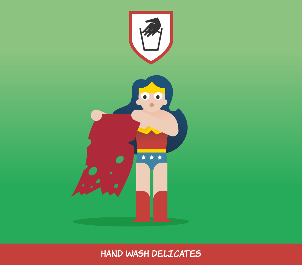 So we thought we’d pull in some help from our superhero friends to tell us what washing symbols mean… After all, that’s what superheroes are all about, right? Helping people out.