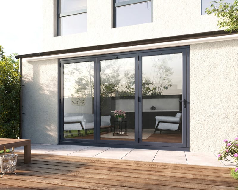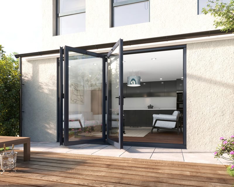 Fully finished with an Anthracite Grey RAL 7016M powder coating system, these aluminium bifolds will last and last without the need for regular finish maintenance, keeping your home effortlessly stylish.