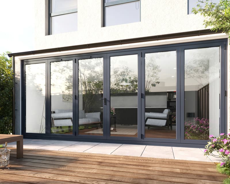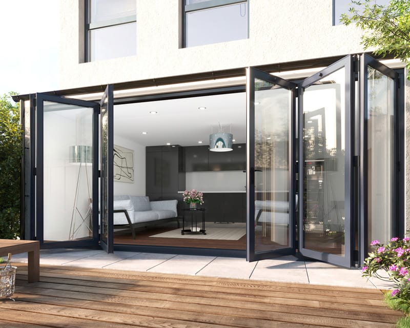 Fully finished with an Anthracite Grey RAL 7016M powder coating system, these aluminium bifolds will last and last without the need for regular finish maintenance, keeping your home effortlessly stylish.