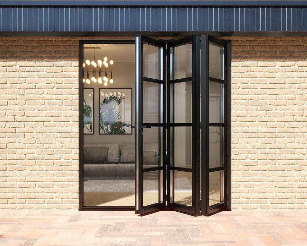 Our Revere Industrial bifolds combine the iconic feel of heritage style steel doors with the attainability of aluminium. Black powder coated aluminium framing makes for a lightweight and more cost effective alternative to steel, while 40mm glazing bars on the surface of the glass help complete the sleek industrial design.