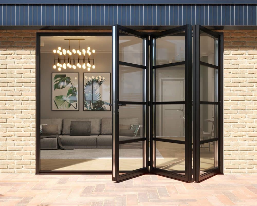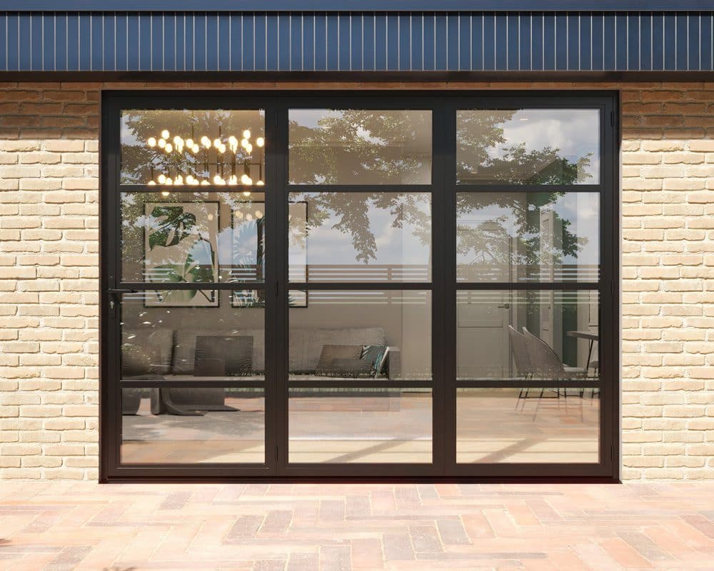Our Revere Industrial bifolds combine the iconic feel of heritage style steel doors with the attainability of aluminium. Black powder coated aluminium framing makes for a lightweight and more cost effective alternative to steel, while 40mm glazing bars on the surface of the glass help complete the sleek industrial design.