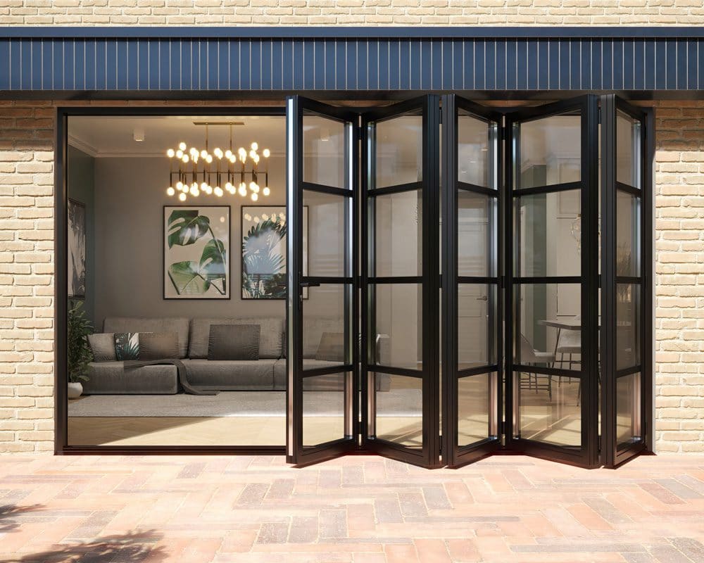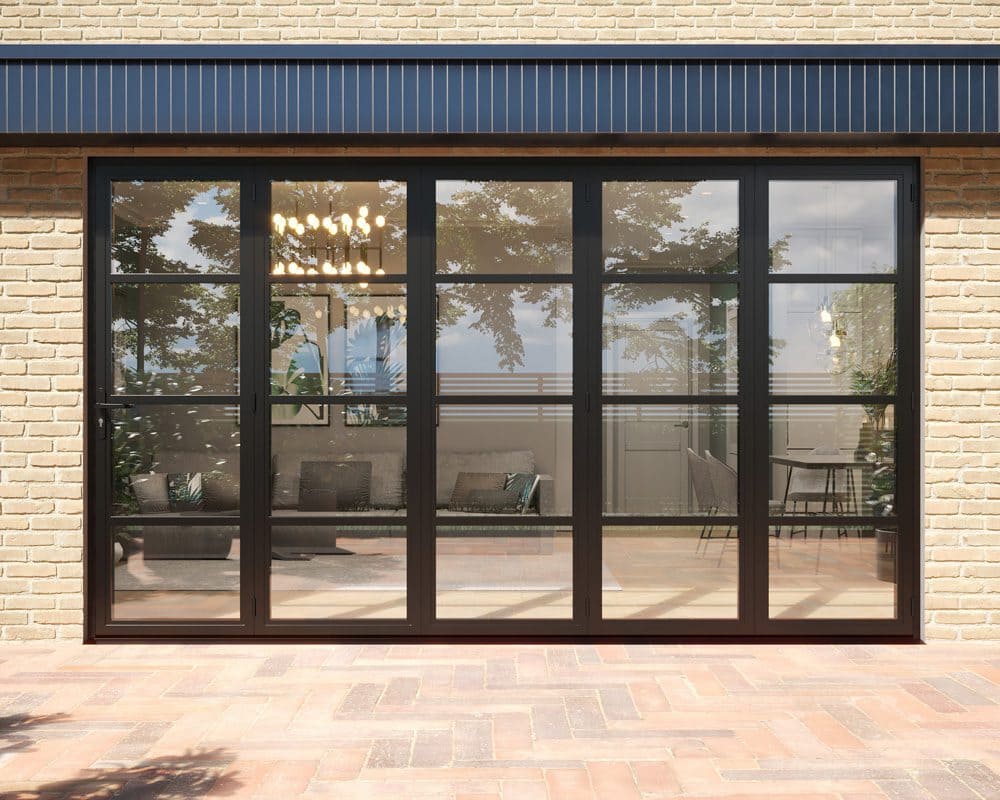 Our Revere Industrial bifolds combine the iconic feel of heritage style steel doors with the attainability of aluminium. Black powder coated aluminium framing makes for a lightweight and more cost effective alternative to steel, while 40mm glazing bars on the surface of the glass help complete the sleek industrial design.