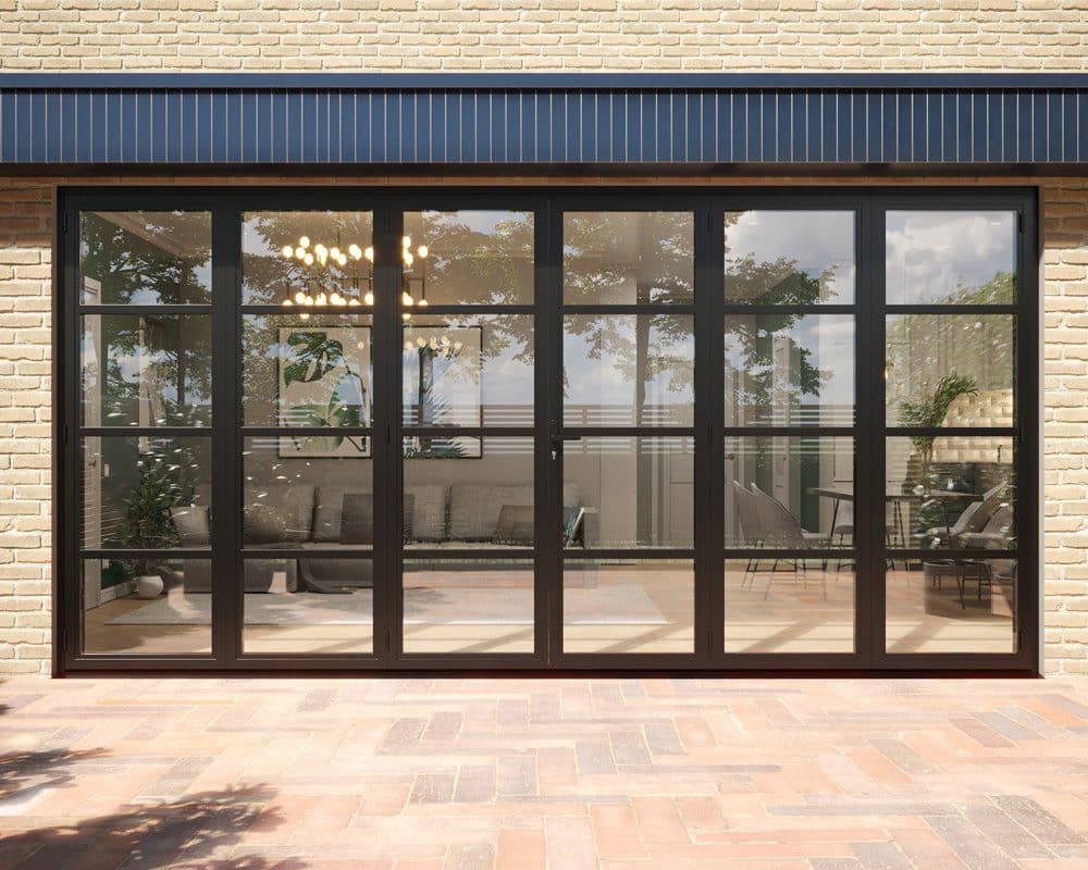 Our Revere Industrial bifolds combine the iconic feel of heritage style steel doors with the attainability of aluminium. Black powder coated aluminium...