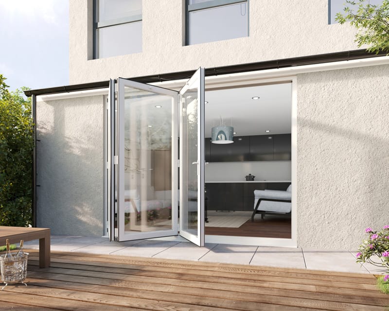 White aluminium bifolds bring classic looks together with cutting edge modern construction methods. Specially designed aluminium profiles provide maximum strength and durability with the thinnest possible framing, offering maximum glass per door leaf.