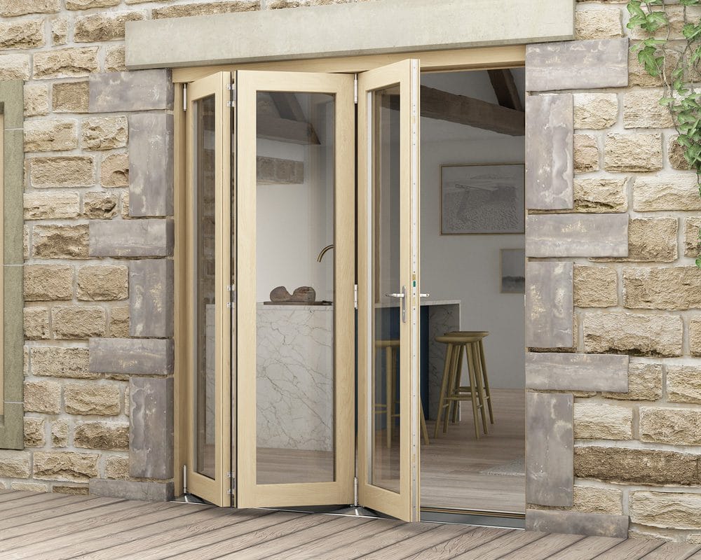 The solid core is engineered to remove the risk of warping or bowing, which can happen with solid oak or pine doors. The engineered core also gives our bi-folding doors added strength. Their core takes the strain of any force while the face veneers provide the luxury finish. They combine all the aesthetic benefits of oak with the durability and security features of engineered exterior bi-fold doors.