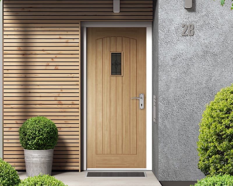 Our Croft has tastefully decorative double glazing with leaded detailing, allowing light through while maintaining your privacy. An engineered timber core provides stability and durability, while real oak veneers are ready to take your chosen paint or stain in any colour you desire.