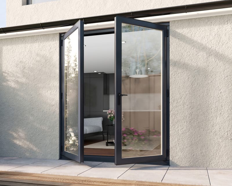 Achieve contemporary styling with minimal fuss thanks to our Revere Grey French doors. Supplied powder coated in a premium RAL 7016 Anthracite Grey finish, these aluminium patio doors will stay flawless year on year without the need for re-painting.