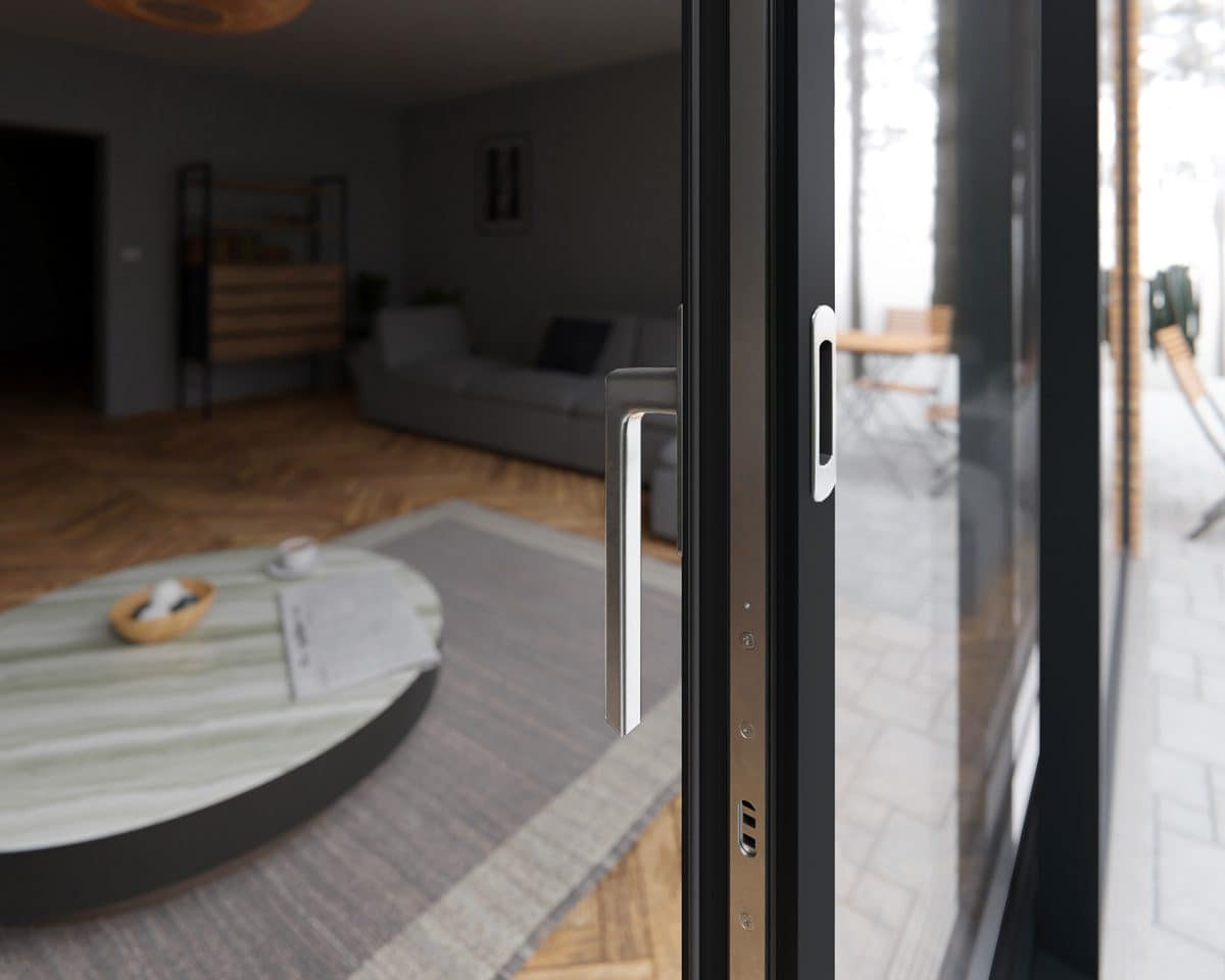 These black patio sliding doors boast a U-Value of 1.4, making them fully compliant with the 2022 revision to Part L of British Regulations. Advanced multi-chamber thermal breaks within the aluminium sections help these doors keep your house warm and energy bills down.