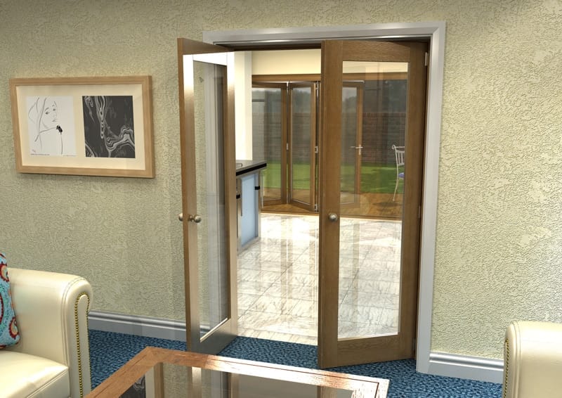 While a living room might be said to benefit from the impression of extra space more than, say, a bathroom, it’s also worth bearing in mind how the door will look from the other side – since, after all, a door will have a visual impact on two rooms rather than just one. If you’re hanging internal French doors in the doorway of a room where privacy is crucial, then you’ll want to choose doors with frosted or semi-opaque glass, or no glass at all.
