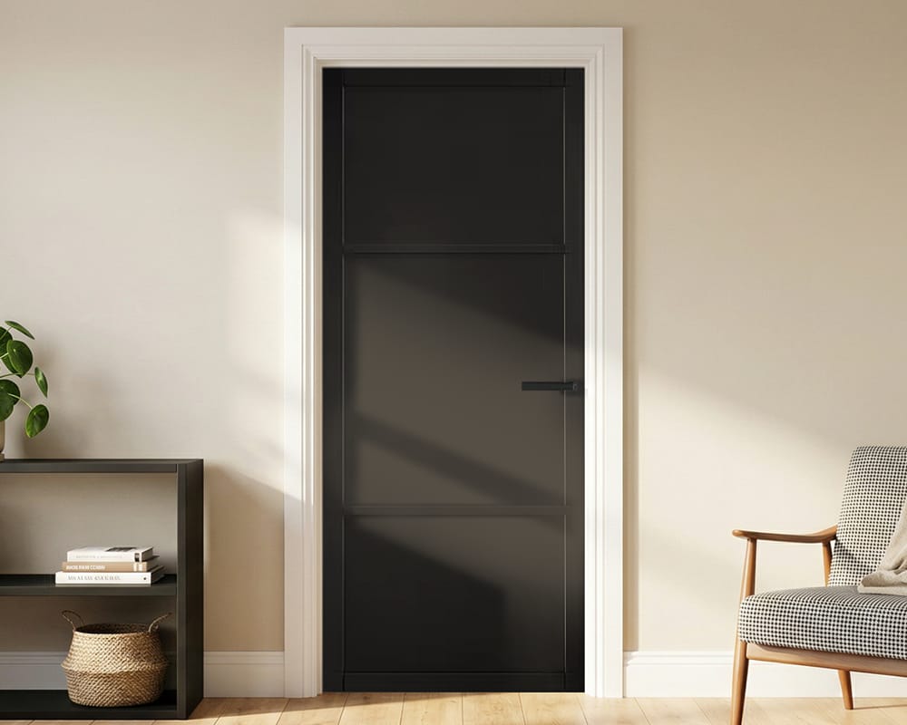 Our black single leaf doors make a brilliant choice for rooms that are built around minimalist or industrial interior design. Our glazed internal doors in particular with the sleek contrast of a black frame with glass panels create a complementary finish.