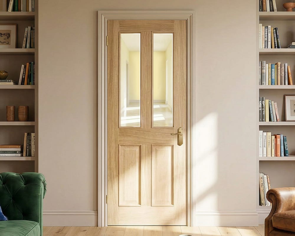 A glazed internal door will help let more light flow through your home, making even cramped or dark rooms feel bigger and brighter. Choose between clear glass and straight sightlines or frosted glass to provide a little more privacy without restricting light.